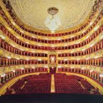 Non solo le città, ma anche i teatri incantano lo sguardo del visitatore. Primo fra tutti, il Teatro alla Scala che Ottieri riproduce su tavola con uno sfoggio del rosso e dell'oro di grandissimo impatto.