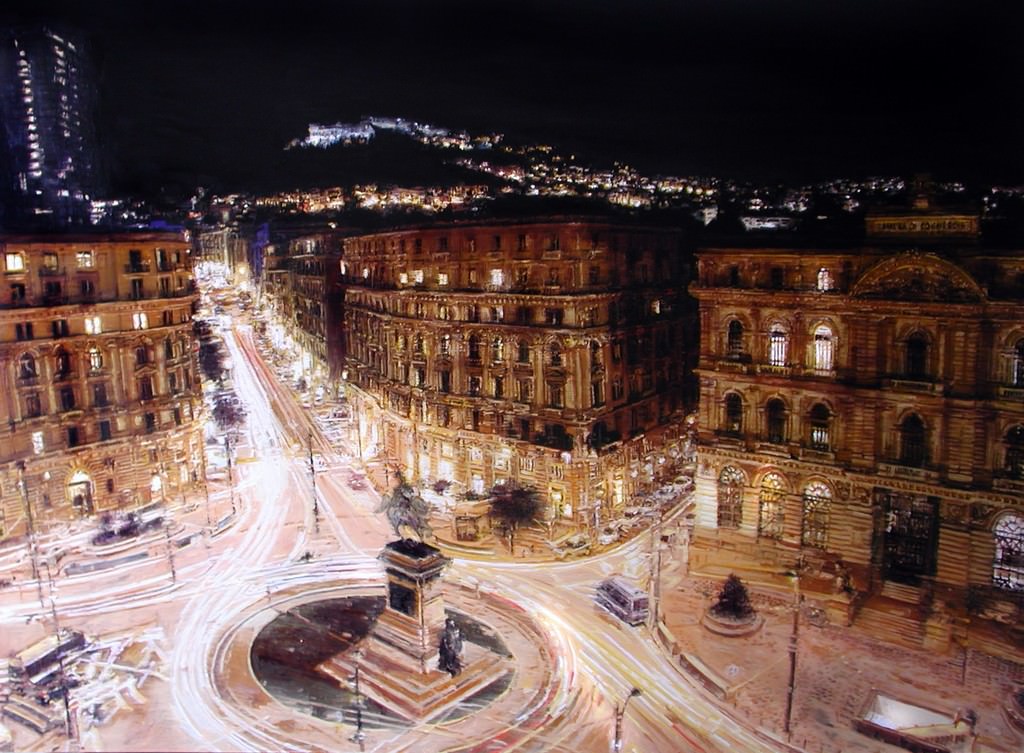 Saranno in mostra venti lavori di piccole, medie e grandi dimensioni che ritraggono realtà metropolitane care all’artista scenari urbani esaltati da pennellate di mescolanze di toni e colori che riportano l’attenzione dell’osservatore ai monumenti delle città, ai centri storici, e alle periferie.