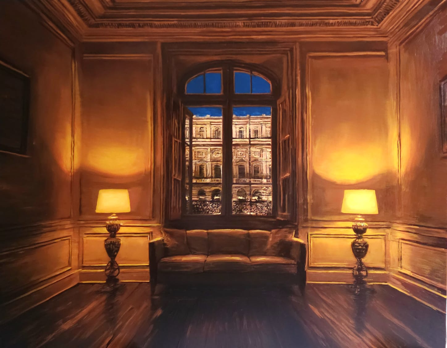 Gli interni sono per lo più un vuoto intimo ed hanno una illuminazione soffusa. Gli esterni hanno la sontuosità del pubblico e sono altrettanto deserti: il convincimento sotteso ai dipinti è che i due vuoti siano di natura diversa”