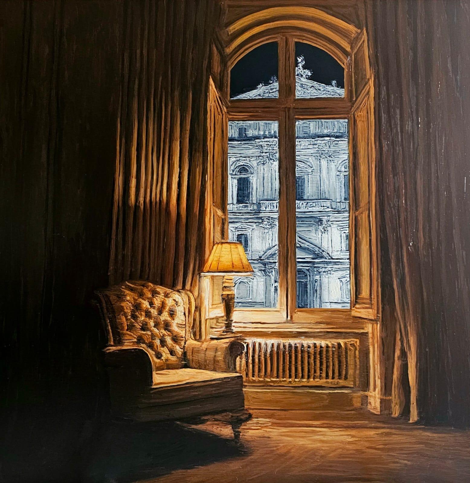 “Nei nuovi lavori interseco interni e vedute prospettiche per rafforzare il legame da sempre presente nella mia pittura tra valore estetico del costruito e valore etico dell'umano