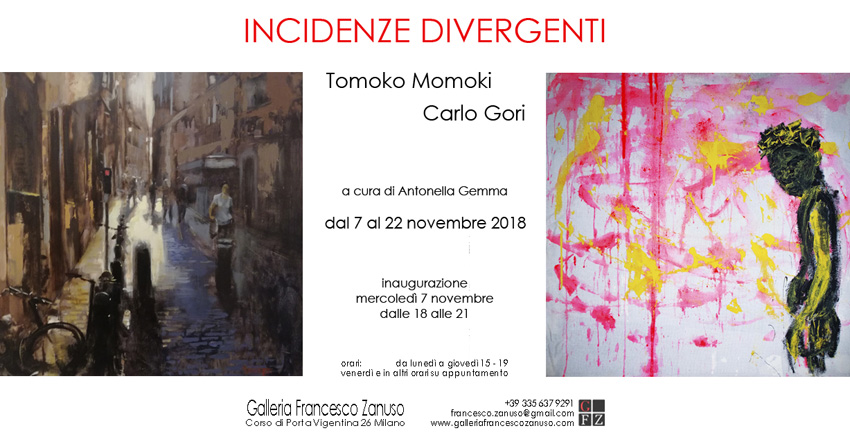 Dopo i successi raccolti dalle precedenti esposizioni, la rassegna di mostre bipersonali organizzate dal gallerista Francesco Zanuso prosegue con “Incidenze Divergenti”, che vedrà una coppia formata dalla pittrice giapponese Tomoko Momoki e dall'artista multidisciplinare Carlo Gori. L'evento, a cura di Antonella Gemma, inaugurerà mercoledì 7 novembre alle 18 in Corso di Porta Vigentina 26 a Milano.