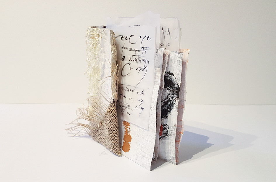 I libri oggetto, di Tonia Ciavarella, si muovono oltre la dimensione quotidiana del linguaggio, superano le strettoie semantiche e sintattiche, che inevitabilmente caratterizzano la comunicazione denotativa quotidiana.