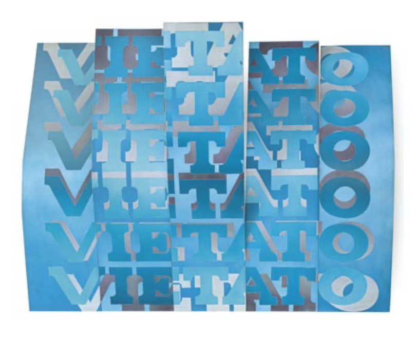 L’allestimento propone un percorso che ha inizio con il deciso passaggio all’astrazione di metà anni Sessanta (Spazi e Transazioni), successivamente ampliata con l’utilizzo di tecniche e materiali sperimentali quali vernici nitroacriliche, feltro, specchi, carte adesive, ondolux e plexiglass (Nitroacrilici, degli anni Sessanta, Vietato, degli anni Settanta).