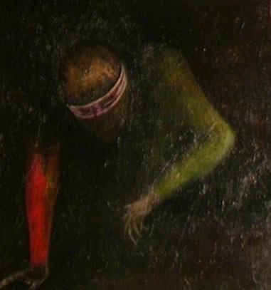 Sulfus, tecnica mista su cartone (olio e foglie d'oro e d'argento) (2002)