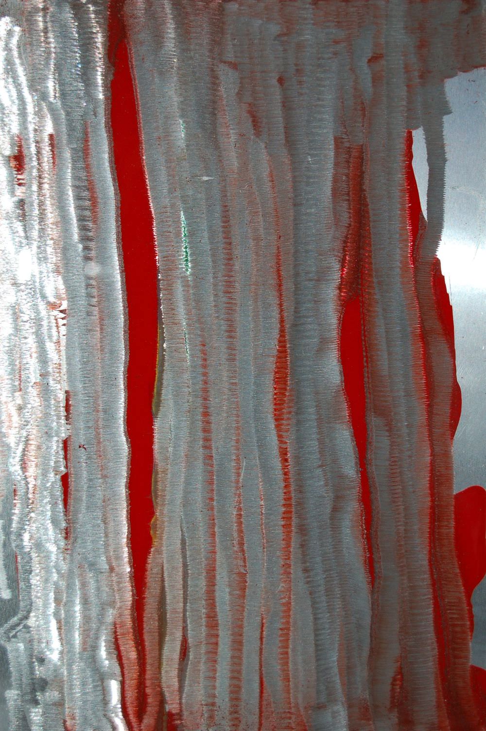 La sua azione artistica inizia con l’alterazione dello stato di regolarità, per questo il supporto metallico viene graffiato, cancellato.