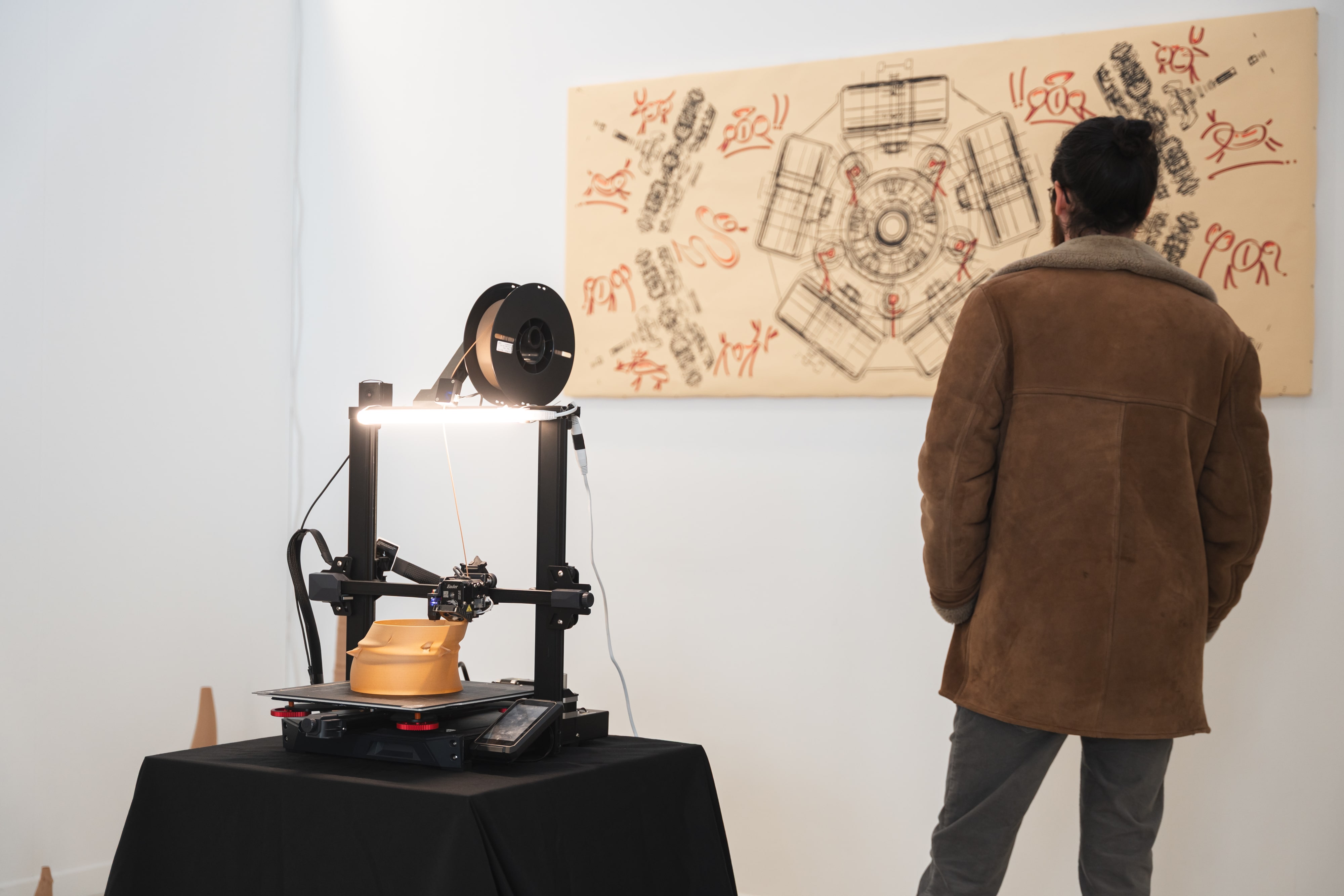 Al centro della pratica di Michele Farina c’è il rapporto tra natura, comunità e processi tecnologici. Le sue opere nascono dall’incontro tra pattern organici e strutture digitali che convivono in un equilibrio poetico e fragile. Uno dei suoi obiettivi è interrogare il ruolo dell’artista in un contesto dominato dalle tecnologie: “È possibile diventare mediatore tra macchina e mondo, capace di creare sintesi produttive che rivelano l’intenzionalità nascosta in ciò che un tempo era considerato un semplice strumento?”. Le pratiche tradizionalmente umane vengono affidate agli algoritmi, che si trasformano così in partner attivi in un processo continuo e reciproco di trasformazione. Le opere diventano il risultato di una negoziazione tra esseri organici e sistemi inorganici, tra mano e codice, tra intuizione e calcolo.