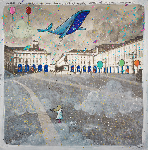 Così scorci e monumenti torinesi diventano palcoscenico per i suoi racconti immaginari. Un’incursione del mondo fantastico nel mondo reale.