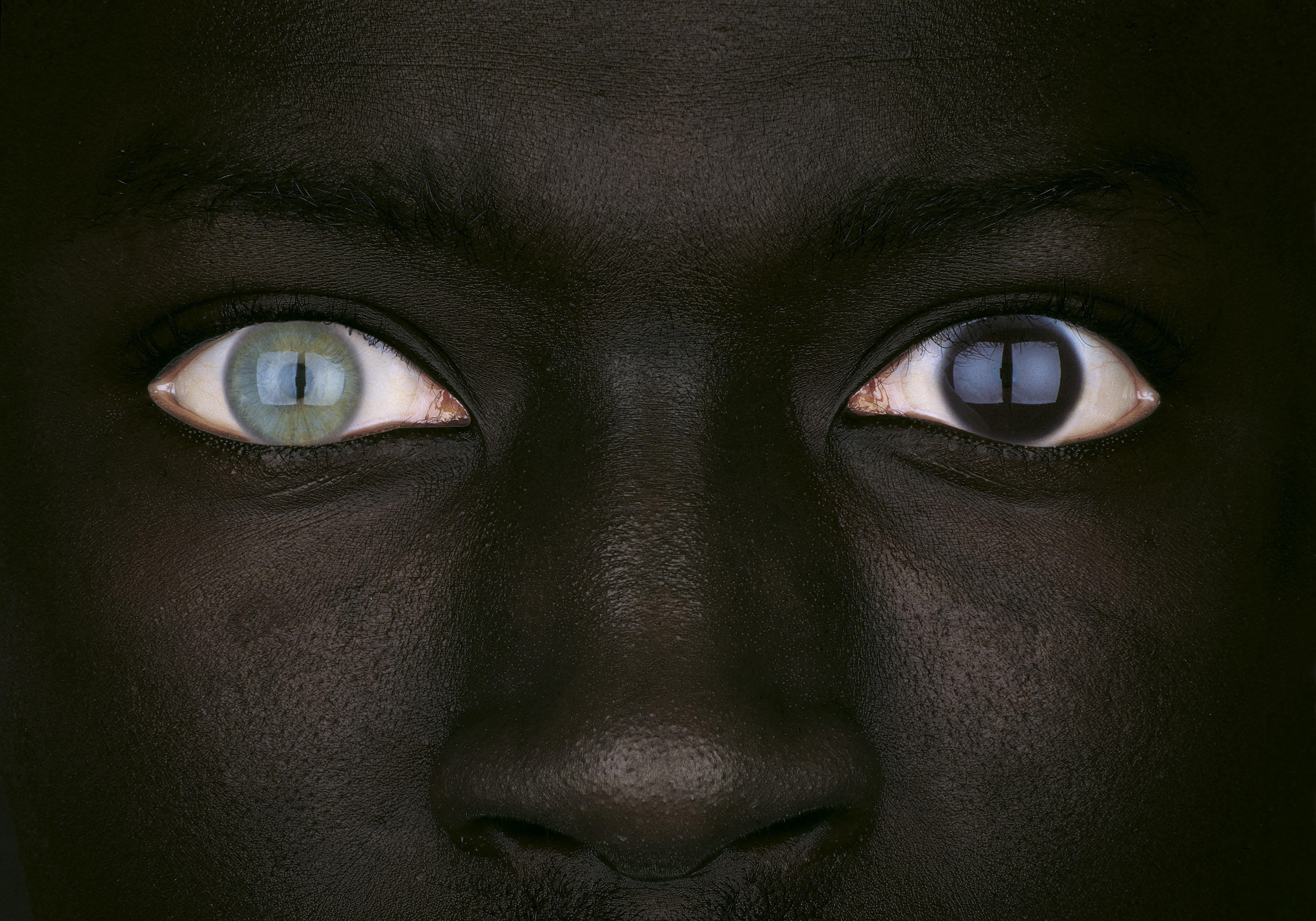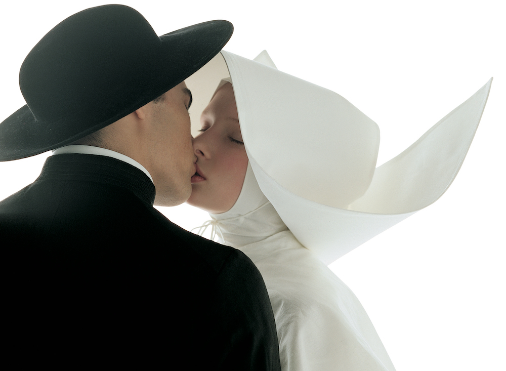 Salendo al piano nobile, il percorso di mostra si snoda attraverso una selezione più rarefatta, una serie di scatti impressi per la prima volta con una particolare tecnica su lastre di cemento di grandi dimensioni, che conferisce alle immagini corpo e tridimensionalità. Opere iconiche di un artista che ha usato capacità visionaria, provocazione e trasgressione per contrastare razzismi, ineguaglianze e soprusi. Tra queste il famoso manifesto Jesus Jeans ‘Chi mi ama mi segua’, Bacio tra prete e suora del 1992, i Tre Cuori White/Black/Yellow del 1996.
