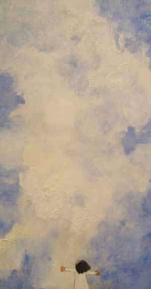 La giapponese Toyomi Nara crea delle composizioni narrative di piccole tele su carta di riso intelaiata e dipinte con un'antica e riflessiva tecnica utilizzata in Giappone tra il XIV e il XIX secolo. I soggetti sono spesso dei bambini disegnati con una stilizzazione volutamente infantile e che attraverso il loro essere candidi, ingenui, privi di filtri e retaggi culturali, entrano direttamente in contatto con una dimensione divina e metafisica. Questa non può essere rappresenta, ma si intravede negli sfondi impalpabili e luminosi in cui le figure sembrano galleggiare senza punti di appoggio e completamente estraniate dal mondo, in scenari immersi tra le nubi o in un bianco mistico e dilagante.