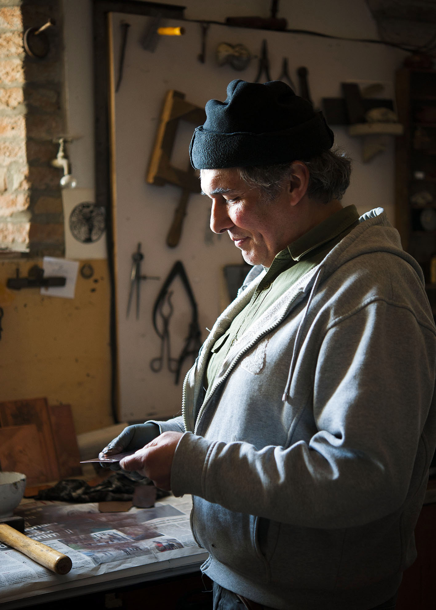 La sua produzione comprende oltre 800 lastre, incise prevalentemente all’acquaforte e a puntasecca. Ideatore e promotore del Salone internazionale del libro d’artista e della stampa d’autore Liberbook a Parma (2013-15), partecipa attivamente a rassegne internazionali di bibliofilia d’arte. Espone regolarmente in Italia e all’estero; sue incisioni e edizioni sono conservate in collezioni private e nelle raccolte di molte prestigiose istituzioni pubbliche.