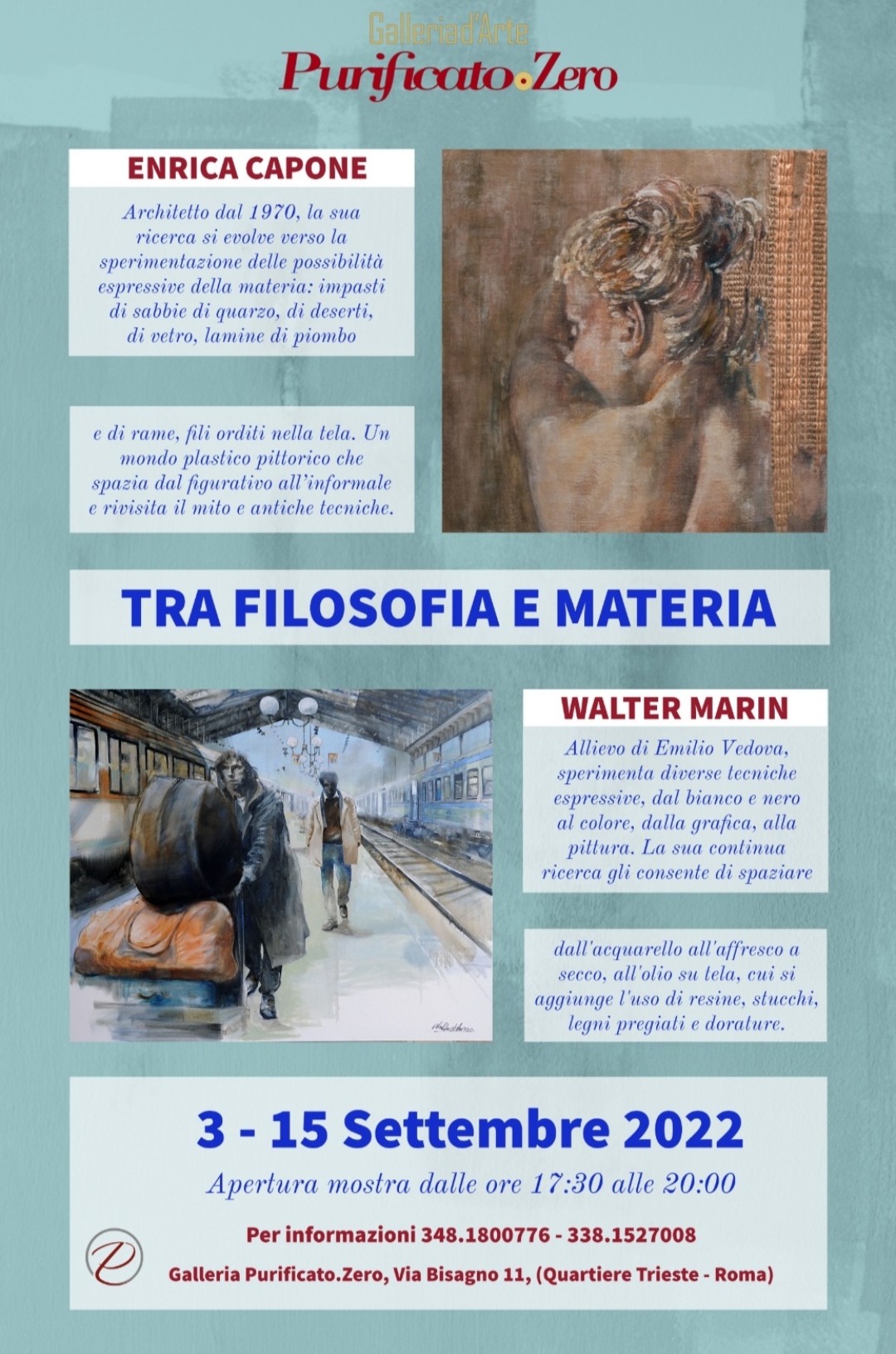 bipersonale con protagonisti Walter Marin e Enrica Capone risultati vincitori del Premio Purificato.Zero, organizzato nella cornice dello