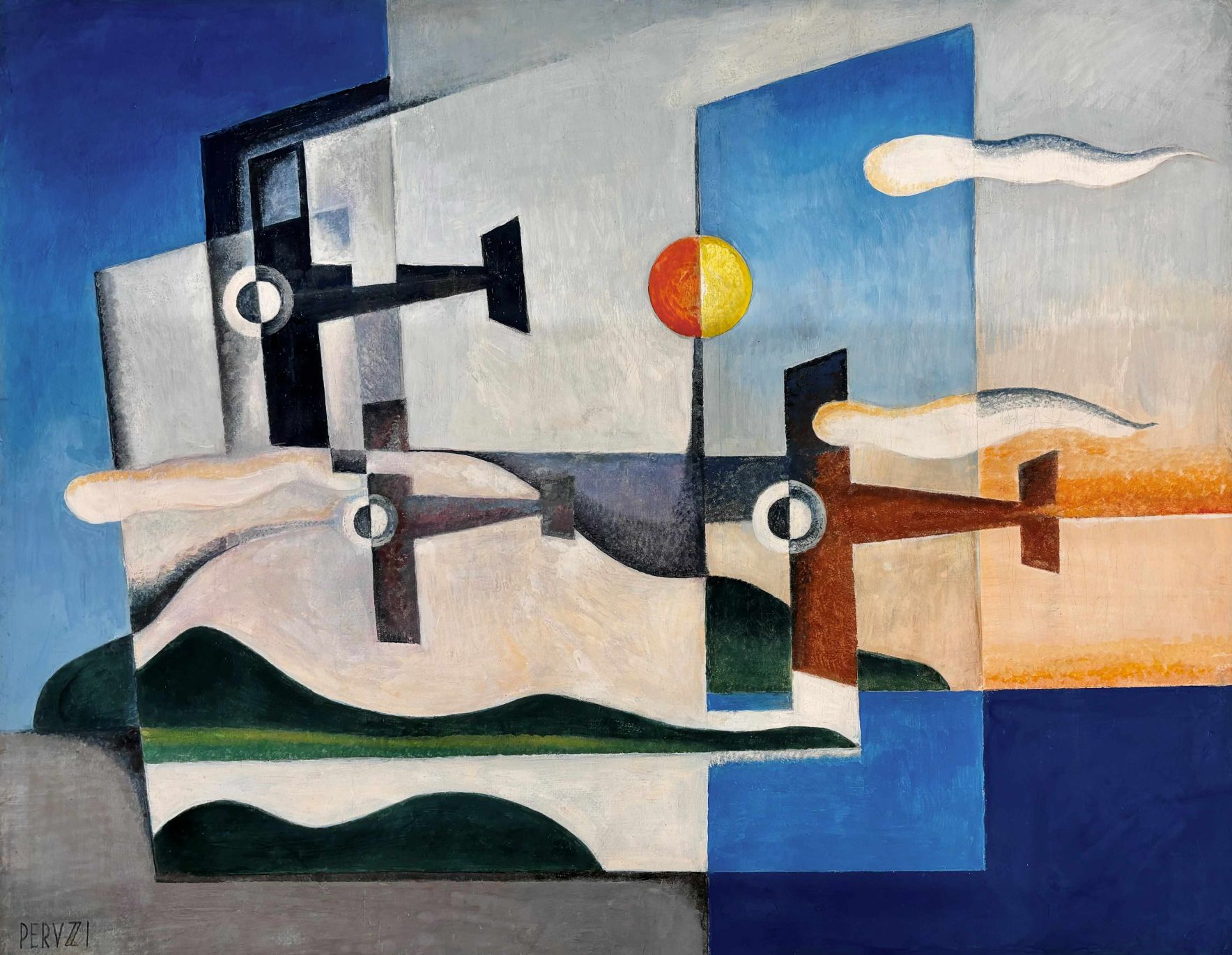 Accanto alle suggestioni naturalistiche, il percorso si apre a una nuova dimensione, quella del volo narrato dai protagonisti del Secondo Futurismo. Ne sono interpreti i poliedrici Giovanni Acquaviva (1900-1971), Arturo Ciacelli (1883-1966), Renato Di Bosso (1905-1982), Umberto Di Lazzaro (1889-1968), Michele Falanga (1865-1937), Osvaldo Peruzzi (1907-2004), Ugo Pozzo (1900 – 1981) e un rarissimo Giuseppe Cominetti (1882-1930) del 1919: con loro il cielo non è più soltanto contemplazione, ma conquista, uno spazio dinamico, attraversato da linee spezzate, colori vibranti e slanci che raccontano l’ebbrezza di librarsi oltre i limiti umani.