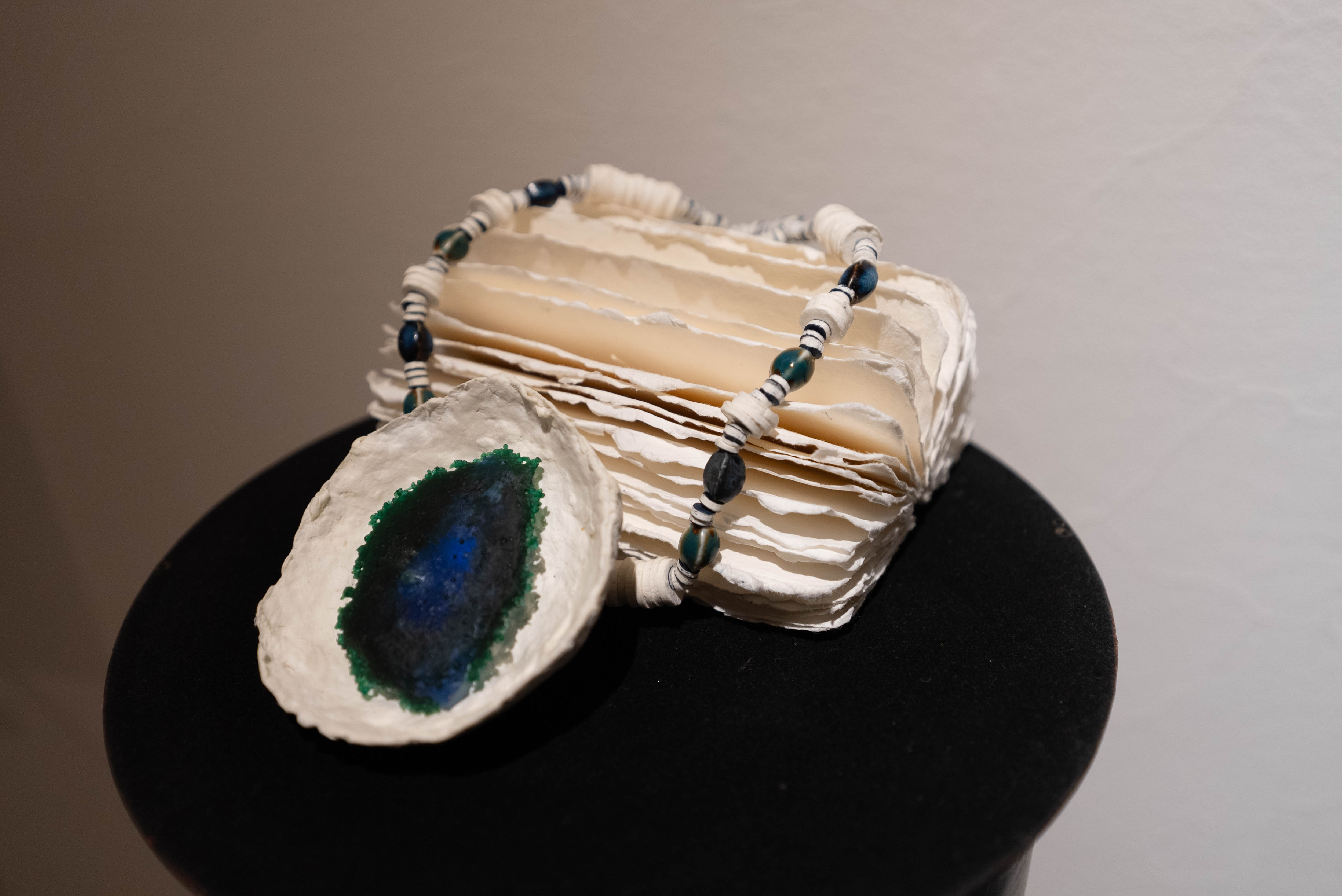 NARRATRAME è in effetti un progetto di gioielleria veneziano, nato in seno all’arte contemporanea: Silvia Pichi, storica dell’arte e art counselor e Fernando Masone, maestro cartaio e artista, producono ‘vezzi’.