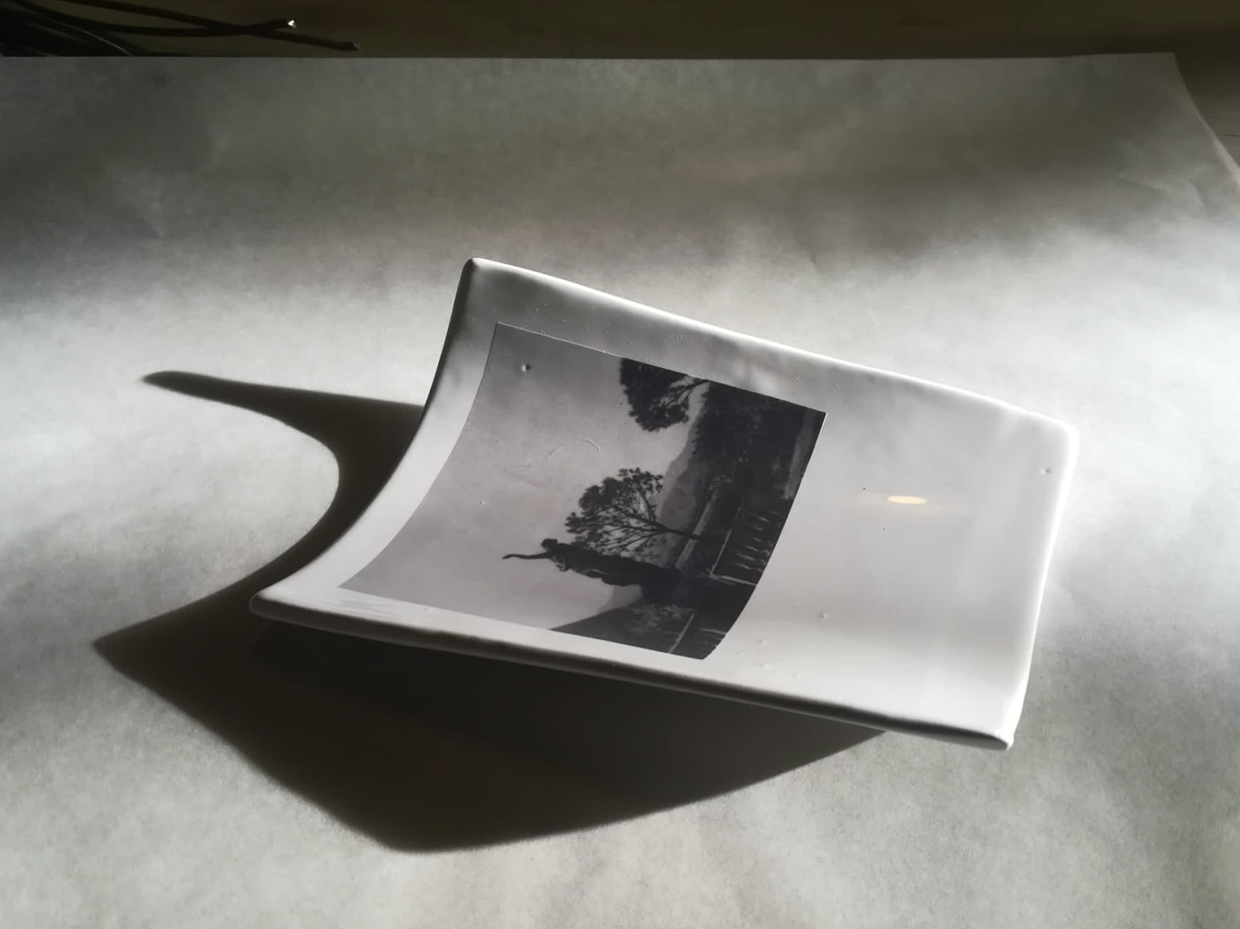 La tecnica di realizzazione delle opere in mostra è scultorea, inizia da una lavorazione a lastra ovvero dalla stesura di terraglia bianca che poi viene ritagliata, modellata, cotta e vetrificata. La decalcomania fotografica passa attraverso una terza cottura: il riquadro stampato viene inglobato dallo smalto che in quest’ultima cottura fonde nuovamente. In questo modo ogni fotografia su ceramica rispetta in maniera fedele le proporzioni e le piccole imperfezioni della stampa originale.