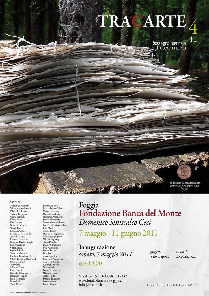 Come per le precedenti edizioni, l’assunto alla base della nuova esperienza espositiva è il desiderio di analizzare il ruolo della carta come stimolo e strumento espressivo della creatività, nella dichiarata volontà di intenderla essenza dell’opera. È su questa premessa che si sono concretizzati gli inviti agli artisti scelti per la loro attitudine a costruire l’opera con la carta, non semplicemente sulla carta, per la loro propensione a esaltare l’intrinseca natura di questa materia duttile e antica, per la loro predisposizione a manipolare la sua porosa e fragile consistenza, dimostrando come possa diventare materia capace di esprimere le infinite combinazioni legate alle differenze dei presupposti concettuali e delle soluzioni formali. Ma soprattutto come la carta nell’era della globalizzazione, che ha inevitabilmente modificato anche le modalità operative della ricerca artistica, possa diventare motivo per recuperare il legame con il passato, riscoprendo la sorprendente vitalità di un materiale continuamente minacciato dalle nuove tecnologie, eppure sempre incline a trasformarsi per rimanere se stesso.