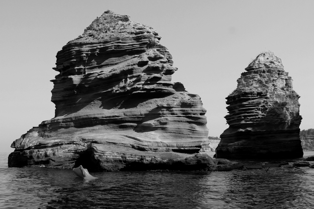 Il costante dialogo con la natura è da sempre centrale nelle opere e nelle performance dell’artista, che presenta in questa occasione anche “Tracciami” Performance di teatro corporale girata ai Faraglioni di Procida.