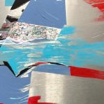 L’opera di Carmen Del Russo ha una struttura articolata tra forme e andamenti cromatici incisi sull’alluminio. La presenza di asimmetrie e linee oblique crea dinamismo e tensione, i segni e le tracce suggeriscono l’idea di percorsi che si intrecciano e si sovrappongono in sequenze che non sono “finite” e tendono a superare i limiti della superficie dipinta in evoluzione come l'evolversi dell'esistenza umana. L’alluminio condensa l'idea dell'iperspazio dove il tempo nel suo divenire è la parte imprevedibile e misteriosa.