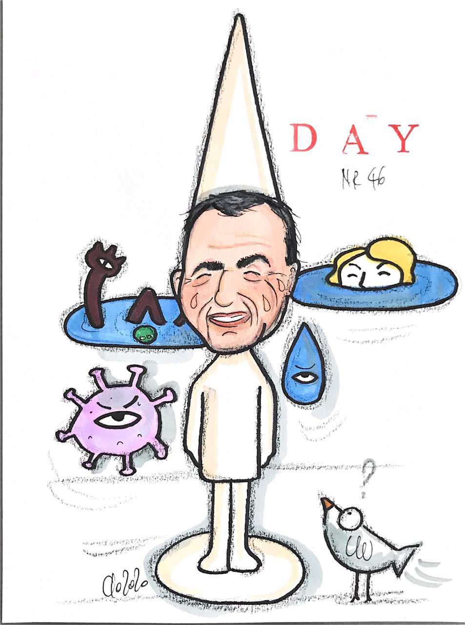 Dal 19 marzo Claudia realizza ogni giorno un ritratto che dedica alle persone che fanno parte della sua vita; la pubblicazione giornaliera sui social media diventa un appuntamento fisso per molte persone che al mattino trovano il suo post a strappare loro qualche ansia e il primo (forse l’unico) sorriso della giornata.