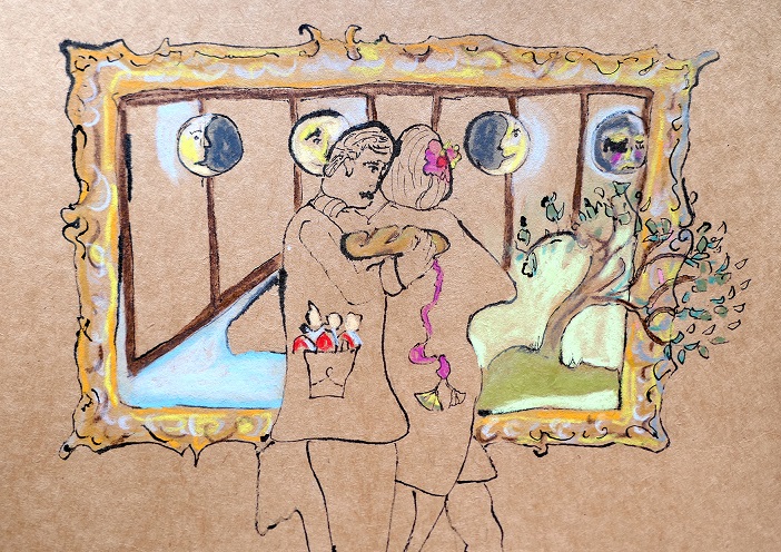 Michiel Blumenthal, attraverso disegni, che nascono “ingenui” di fronte a tutti i personaggi, ne traducono in immagini, quasi sogni disegnati, gli accenti, che nascondono i loro volti segreti, rivelando la leggerezza sorridente dei loro caratteri intimi.