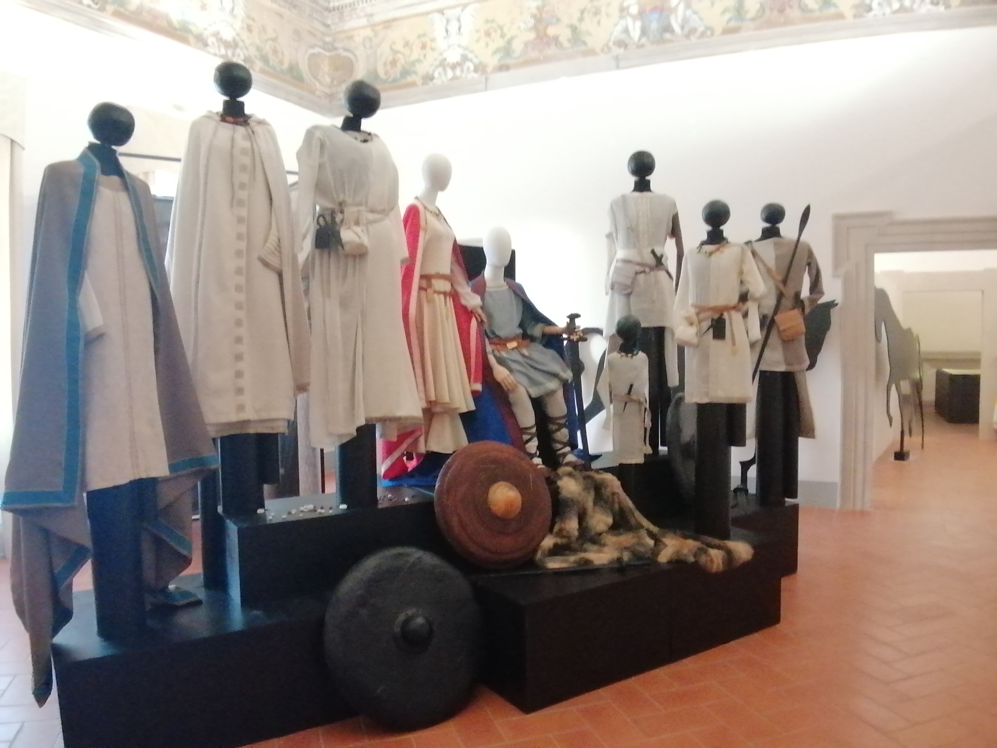 “Trame longobarde. Tra architettura e tessuti” . L’esposizione presenta abiti longobardi realizzati in parte dai detenuti della Casa di Reclusione di Spoleto, su studio di dati archeologici e di confronti iconografici. In allestimento rappresentanti dell’elite, della corte, del popolo.