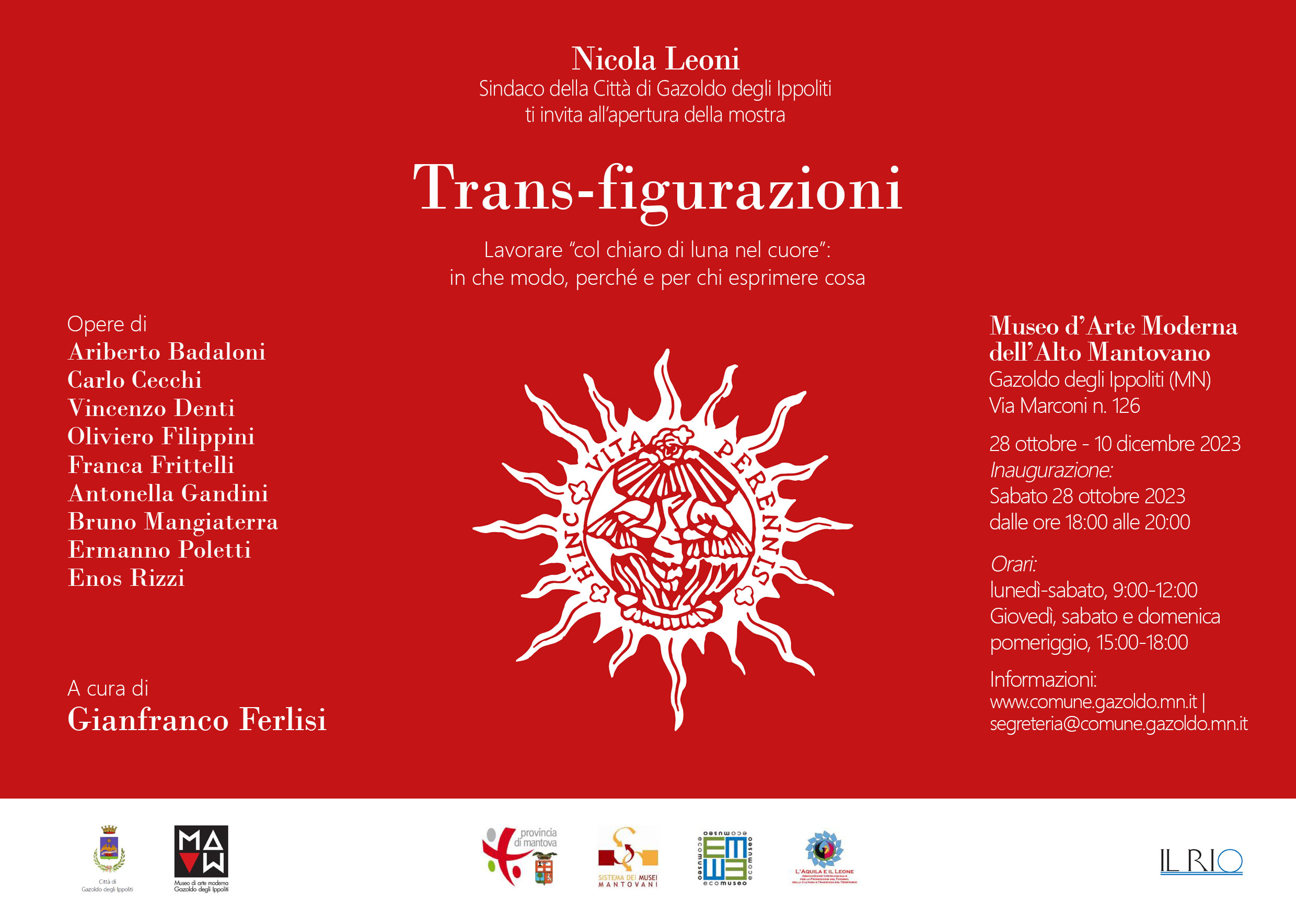 Come afferma Nicola Leoni, il Sindaco di Gazoldo: si apre dunque una rassegna d’arte con la A maiuscola, garantita dalla qualità delle scelte e dall’eccezionale fascino immaginativo del contesto: uno straordinario percorso fruitivo per l’intera comunità di Gazoldo, di Mantova e non solo (ovviamente).