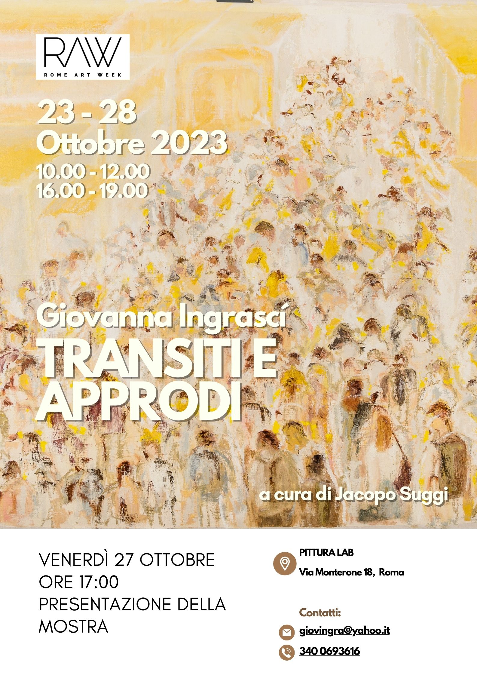 Lo studio Pittura Lab di Giovanna Ingrascí nel pieno centro di Roma, sarà visitabile per una settimana e ospiterà la mostra Transiti e Approdi. L’esposizione si compone di una significativa selezione delle opere dell’artista.