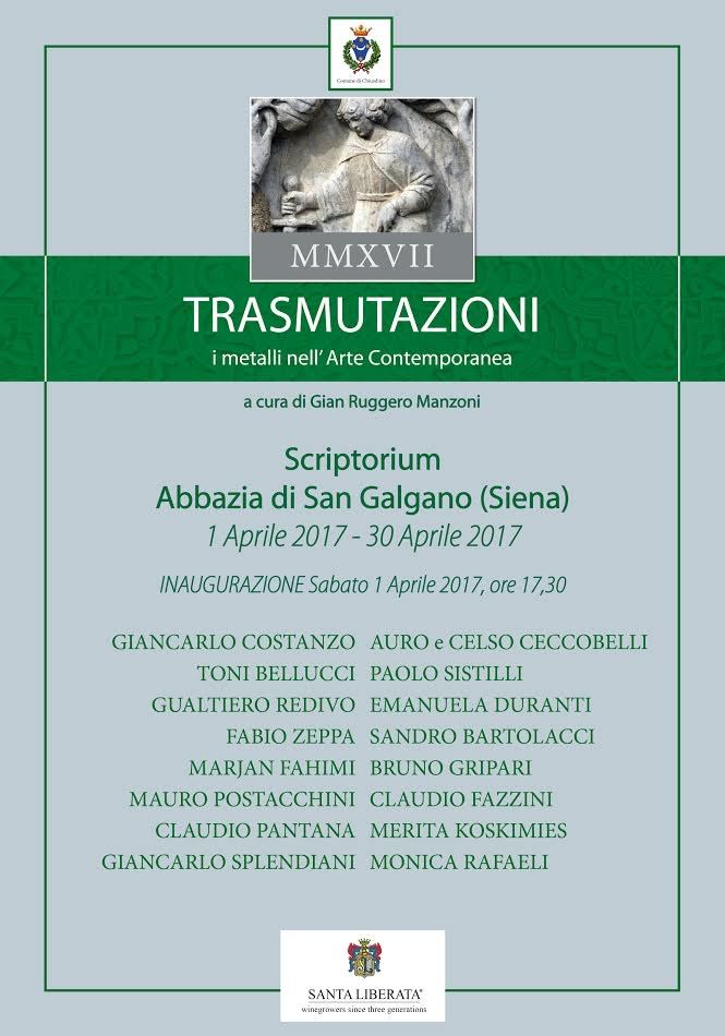 La mostra si svolgerà nello Scriptorium della Abbazia di San Galgano. La prima Trasmutazioni fu presentata a Spoleto nel 2014 con 12 artisti. In questa edizione gli artisti coinvolti sono 16 che utilizzano metallo o più metalli nelle loro opere.