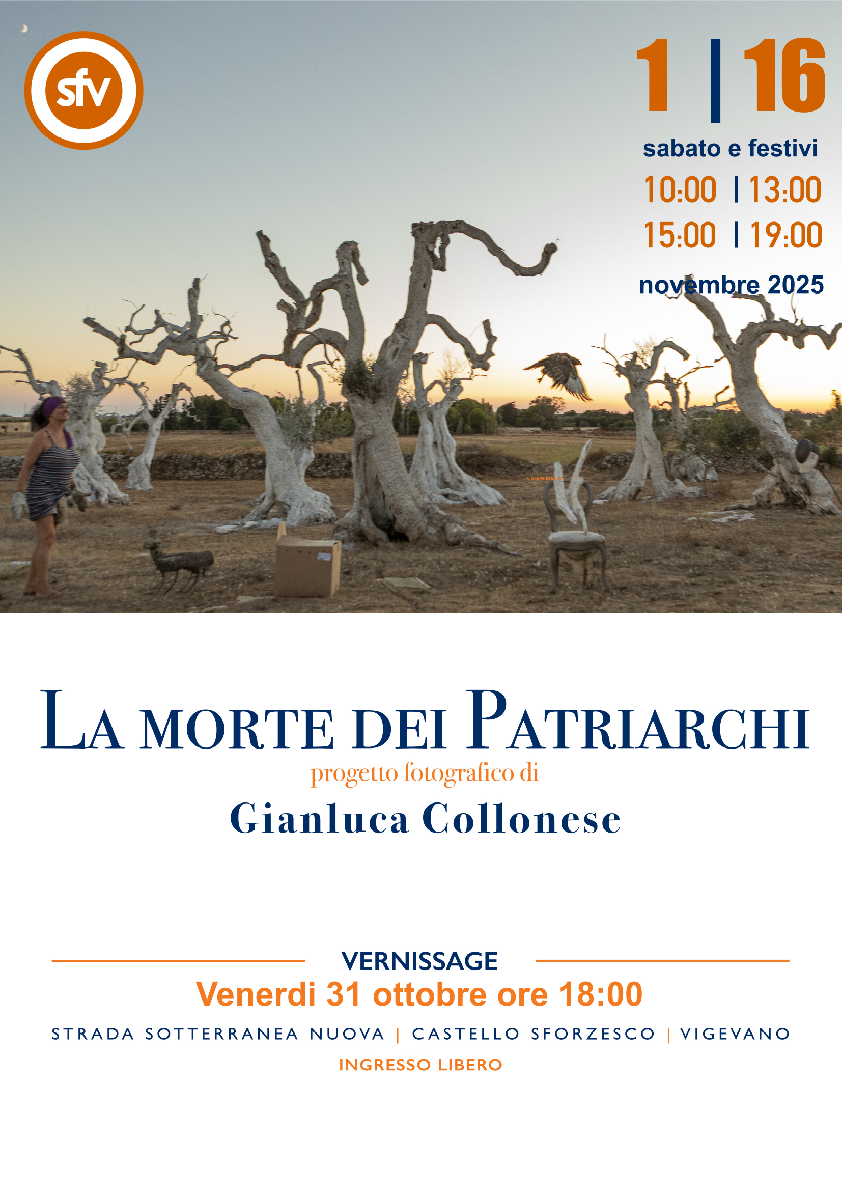 Fondata nel 2003, la SFV promuove una fotografia di contenuto e di impegno civile. In oltre vent’anni di attività ha dato vita a mostre, eventi e collaborazioni con autori e realtà internazionali, consolidandosi come punto di riferimento per chi crede nella fotografia come strumento di conoscenza, riflessione e memoria condivisa.
