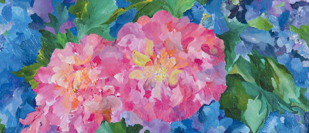 I fiori perdono le connotazioni naturalistiche per assumere l’espressionismo proprio di chi si è innamorata del colore e vuole che si percepisca che è nell’essenza della natura la vera risposta alle malie dell’uomo moderno.