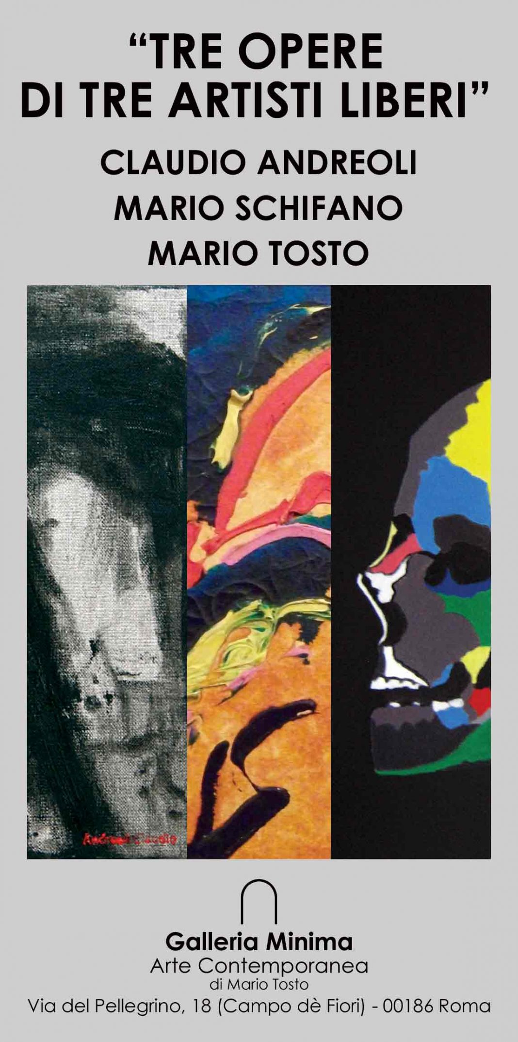 La mostra collettiva dal titolo "Tre opere di tre artisti liberi" sarà allestita presso la Galleria Minima - Arte Contemporanea di Roma, dal 6 Febbraio al 5 Marzo 2016.