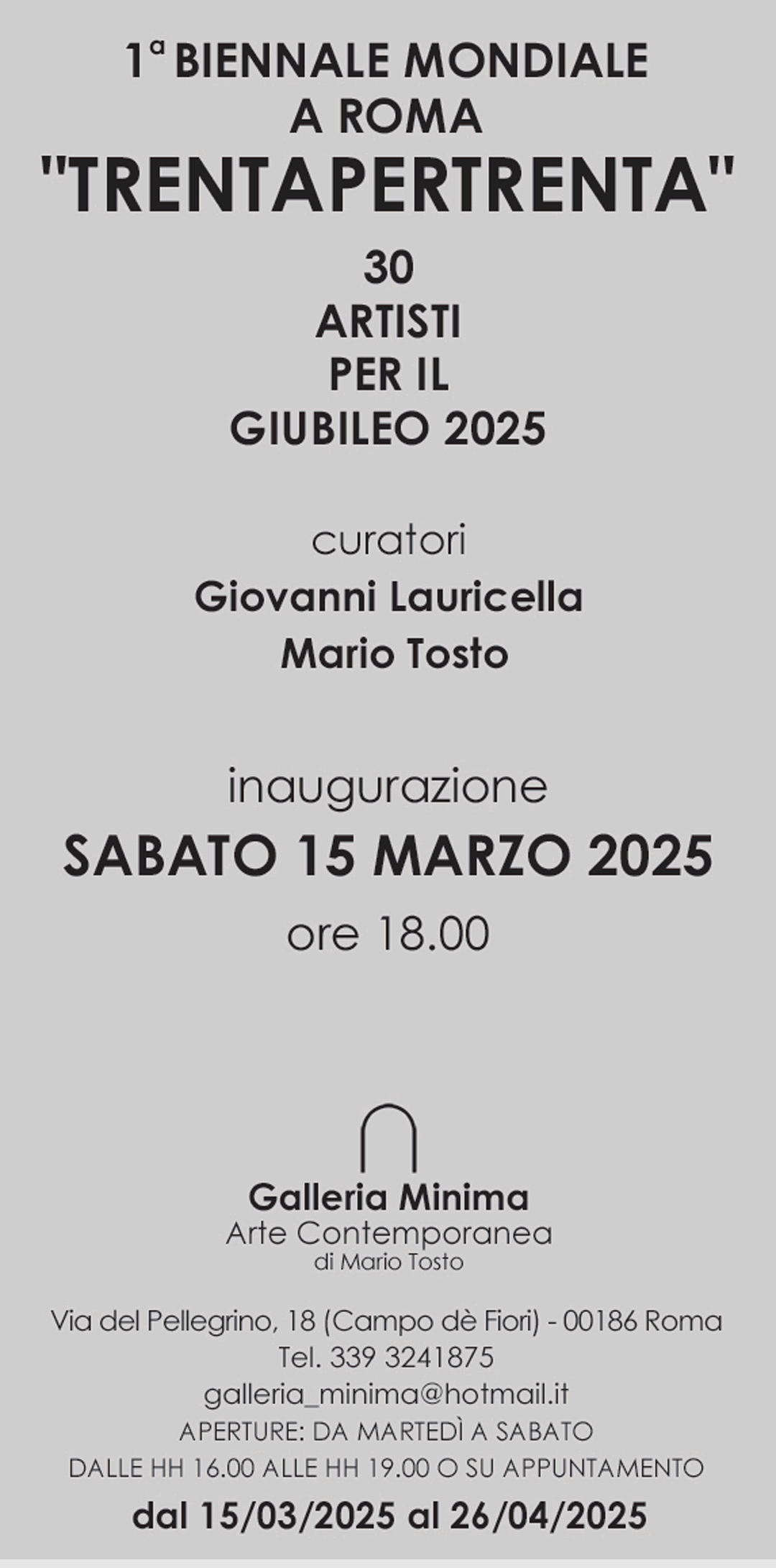 In occasione del giubileo la galleria minima ospiterà la prima edizione della biennale mondiale del formato 30×30 che vedrà protagoniste le opere di 30 artisti.