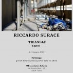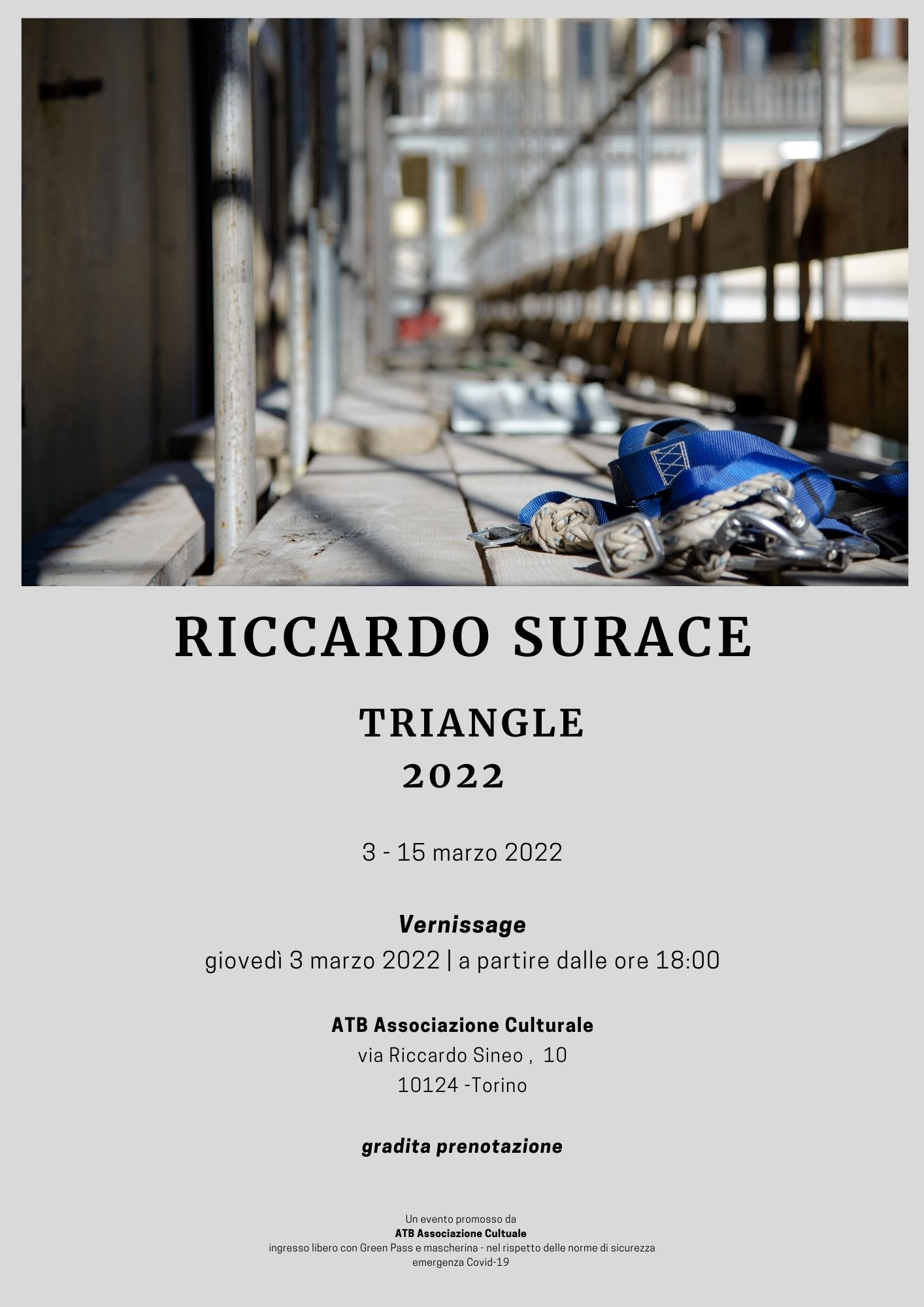 ATB Associazione Culturale presenta, in occasione della Giornata mondiale della donna, la mostra "Triangle" di Riccardo Surace. L'esposizione è stata pensata come parte del progetto #nEXTRAditio, espressione delle attività dell'Associazione per il 2022 dedicate ai giovani, alla digitalizzazione, al green, all'uguaglianza, ai progetti con una precisa vocazione territoriale dall'approccio curatoriale definito, rivolti a una community e a fruitori interessati a proposte dal taglio ben specifico. Un percorso culturale di esibizioni artistiche internazionali, quello di ATB per tutto il 2022, in modalità blended. Con il progetto #nEXTRAditio, ATB Associazione Culturale intende riproporre e ridefinire alcune delle modalità tradizionali di fruizione artistica proponendo opere contemporanee, talvolta sperimentali, ma in un contesto che favorisca anche un impegno di formazione e di recupero della tradizione artistica, valoriale e culturale. Questi i cardini della programmazione (nel corso dell'anno esporranno artisti italiani e internazionali) ben rappresentati nel progetto artistico in mostra dal 3 al 15 marzo 2022.
