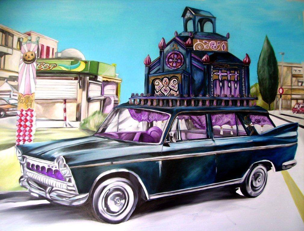 Tra le interpretazioni più originali c’è quella di Vanni Cuoghi, un dipinto su tela che rappresenta l’innesto tra la festività cristiana di Ognissanti e quella pagana e popolare di Halloween con il virtuale incontro tra i martiri della fede e l’icona di Jack O’ Lantern, la famosa testa di zucca ghignante. Un’allusione alla tradizione cattolica è contenuta anche nell’opera di Giuseppe Veneziano, che per l’occasione offre un’inedita versione dell’Annunciazione con protagonista una sdegnosa Morticia Addams. E alla macabra famiglia di freak è dedicata anche l’opera di Samuel Sanfilippo, che immagina una versione dell’auto degli Addams sormontata da una cattedrale in stile gotico italiano. Al Frankenstein di Boris Karloff è, invece, dedicata l’opera di Roberto Messina, in cui l’icona horror è assediata dal consueto processo di testurizzazione dell’immagine. Ispirato all’iconografia medievale della Danza Macabra è, invece, il girotondo di scheletri bambini di Silvia Idili, una sorta di variazione pop surrealista sul tema tradizionale della vanitas. Una delicata visione notturna e insieme una fragile fantasmagoria è quella costruita da Silvia Argiolas, che con la sua vena onirica tratta il tema dell’adolescenza tramite la vibrante combinazione tra figura e paesaggio. In The addiction, titolo ispirato all’inconsueto vampire movie di Abel Ferrara, Giuliano Sale raffigura due allampanate donne vittoriane e un raccapricciante capro con tre corna sullo sfondo di un tetro e caliginoso paesaggio silvestre. Un clima bizzarro, in bilico tra la fiaba e il racconto dell’orrore promana dal dipinto di Loredana Catania, dove compaiono tanto i simboli di Halloween (il gatto nero, il pupazzo di Jack O’ Lantern e i dolci) quanto quelli dell’Alice disneyana (la sedia a dondolo, i funghi e i dolcetti dalle miracolose proprietà). Fiabesco, ma con un tocco macabro, è pure il disegno di Michela Muserra, il cui stile illustrativo ben si presta alla rappresentazione ironica e scanzonata del mostruoso.