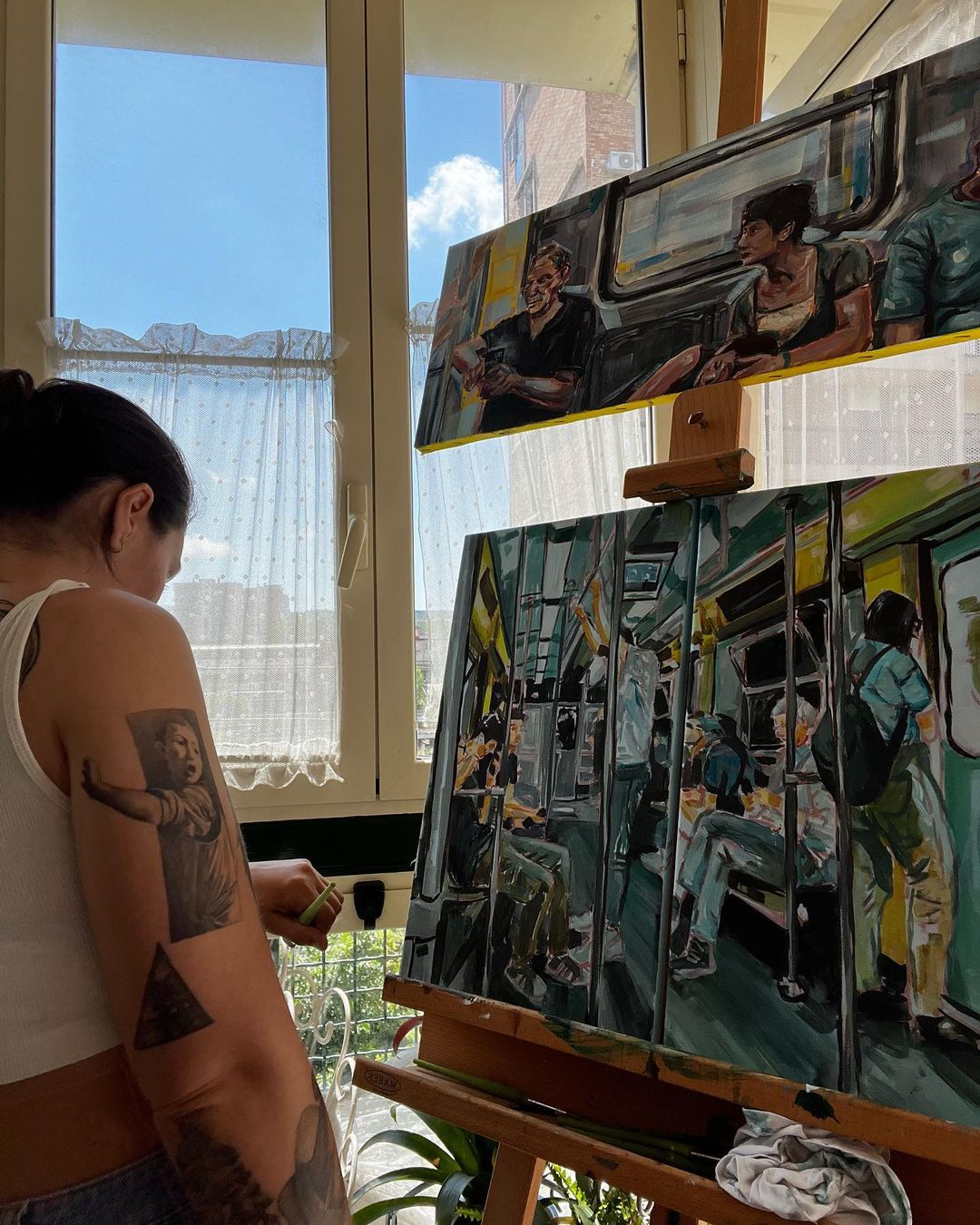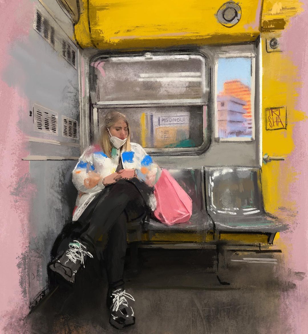 La mostra vuole raccontare la quotidianità vissuta in metropolitana, catturando frammenti di quei tragitti spesso vissuti distrattamente, ma che scandiscono i ritmi delle nostre vite. L’apparente monotonia della metropolitana si trasforma, attraverso l’arte di Trisha, in istantanee poetiche e malinconiche, intrise di uno stile che riflette il suo dialogo con il mondo dei graffiti. Trisha, con pennelli e spray, mette la sua creatività al servizio dell’arte urbana!