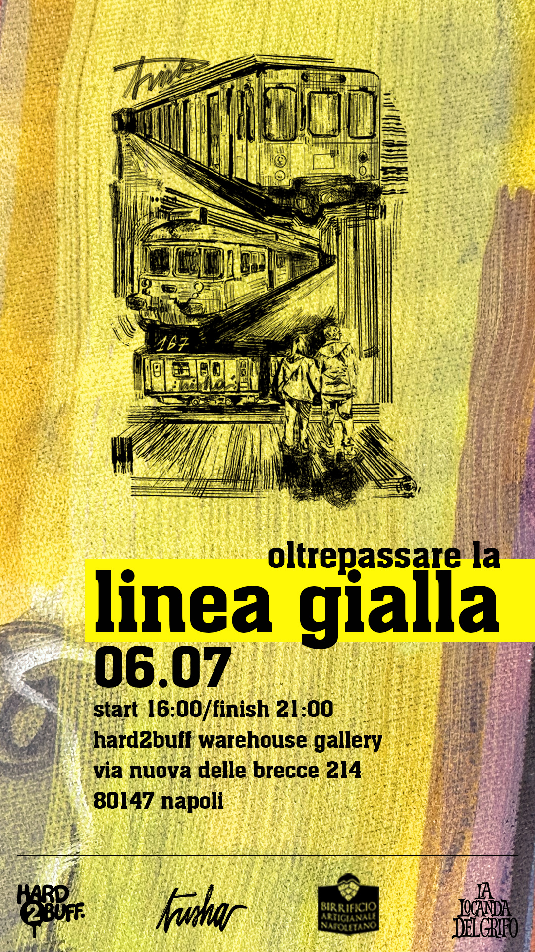 🟡 OLTREPASSARE LA LINEA GIALLA - Una Mostra di @trishapalma dal 6 Luglio c/o Hard2Buff Warehouse Gallery