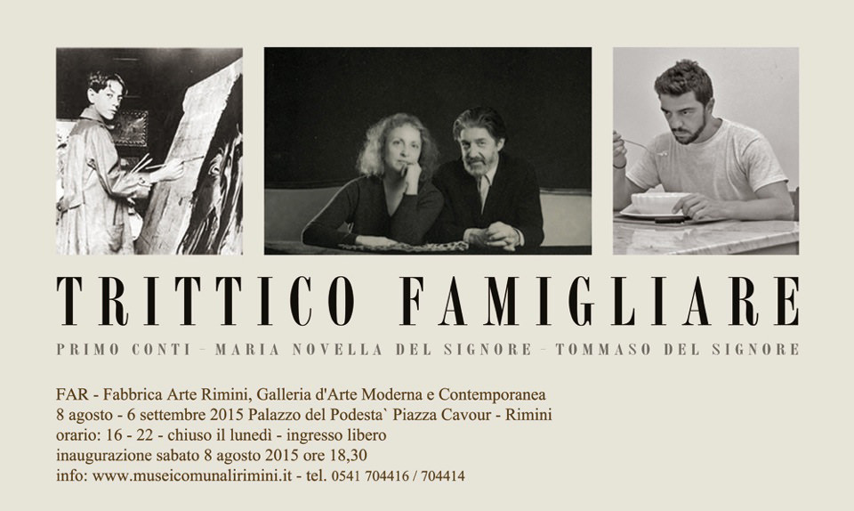 TRITTICO FAMIGLIARE si propone di riunire nell’ambito dello stesso evento espositivo tre generazioni di una stessa famiglia di artisti attraverso un arco di tempo di circa un secolo, 1911-2015: Primo Conti, Maria Novella Del Signore, figlia del primo, e Tommaso Del Signore, figlio della seconda.