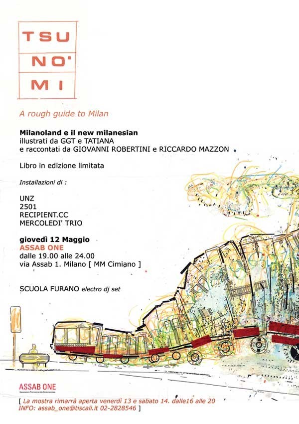 Tsu-nò-mi ad Assab One mostra le tavole e i racconti del libro in edizione limitata; ospita La Novanta, un video di animazione di GGT sul giro della “milanesissima” linea 90, e un¹installazione collettiva nata dal sodalizio di GGT e Tatiana con Unz, 2501, Recipient.CC e Mercoledì Trio