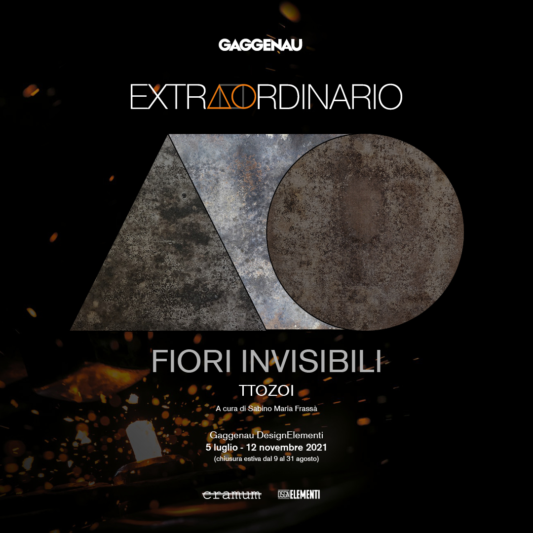 Apre lunedì 5 luglio 2021 al Gaggenau DesignElementi di Roma la mostra del duo TTOZOI “Fiori invisibili” a cura di Sabino Maria Frassà. La mostra è parte del ciclo artistico “Extraordinario”, promosso tra Roma e Milano dal brand del design Gaggenau insieme al progetto non-profit Cramum. Filo conduttore di questo ambizioso progetto è l'indagine attraverso l'arte e il design del rapporto sempre più complesso tra l'essere umano e lo spazio urbano, architettonico e sociale.