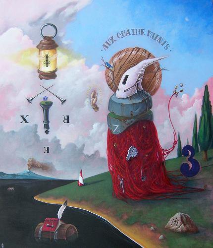 Blanquet. Si esprime attraverso un’iconografia densa di dettagli fiabeschi e grotteschi che sfiorano un macabro sarcasmo. Un mondo in cui i quieti elementi delle favole si addensano in fotogrammi inconsci di paure camuffate dall’ironia.