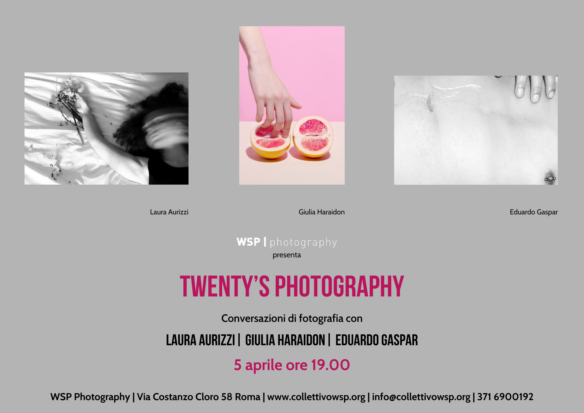 Per il ciclo Conversazioni di fotografia WSP Photography è lieta di presentare “Twenty’s Photography”, una serie di incontri dedicati ai lavori di giovani fotografi.