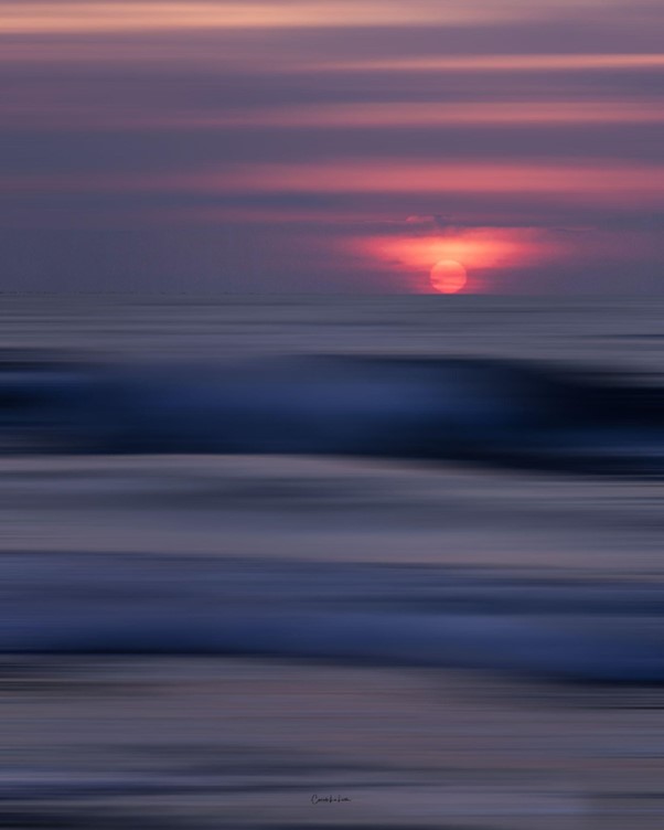 Mare con cui l’artista dichiara di avere un rapporto intimo e solitario, ma non necessariamente bello. “Il mare non ha pietà, ogni volta che mi approccio a esso è come se aspettassi di essere accettato per poterlo fotografare”. E le foto sono l’espressione di un percorso di solitudine, ricercata e necessaria, in cui “il mare ti fa capire chi sei, come in un atto meditativo”, una continua ricerca di essenzialità, che non si limita a guardare l’orizzonte ma cerca di vedere oltre, verso l’immenso, l’infinito.
