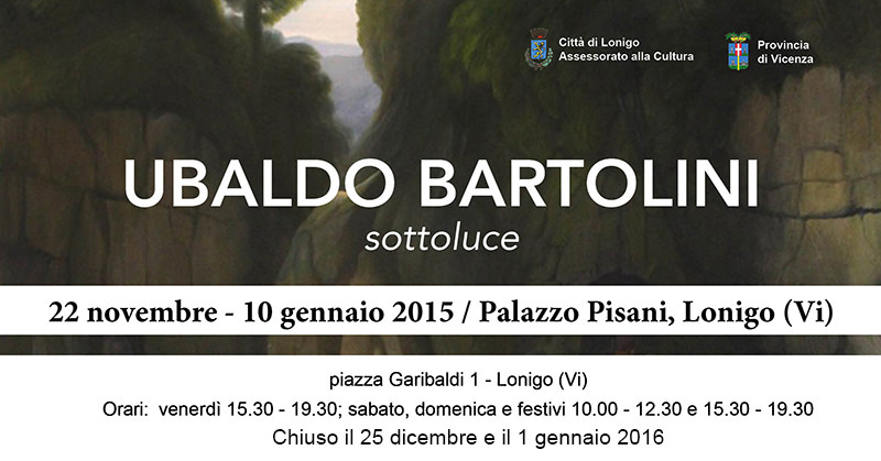 Sottoluce è il titolo della mostra personale del maestro Ubaldo Bartolini ospitata presso le sale di Palazzo Pisani di Lonigo (VI), la Casa della Cultura che da ormai tre anni firma manifestazioni ed eventi di alto spessore culturale, in un excursus di oltre 30 opere dal 22 novembre 2015 al 10 gennaio 2016, con inaugurazione domenica 22 novembre alle ore 10.30.