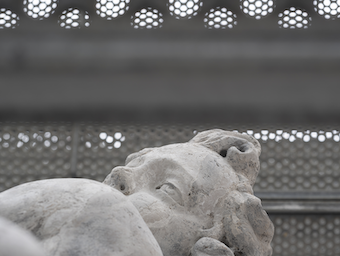 Al secondo piano del palazzo, solitamente dedicato alle mostre temporanee, Carmeni espone cinquantasette opere che partono da un lavoro di documentazione e mappatura delle superfici architettoniche della città avvenuto tra l’ottobre del 2020 e il marzo del 2023 nel contesto di una serie di restauri di alcuni edifici e chiese del Patriarcato di Venezia, a cui si aggiungono sguardi su altri luoghi della città. La mostra prevede inoltre una installazione multimediale, composta da una selezione più ampia di immagini montate in sequenza apparentemente casuale ma in realtà generata da un algoritmo che, reagendo alla presenza dell’osservatore, produrrà una lettura visiva sempre diversa lungo l’intero arco temporale di apertura della mostra mentre un analogo meccanismo, in collegamento con l’affluenza del pubblico, determinerà la composizione del sound design. La proiezione – ideata espressamente dall’artista per questa mostra in collaborazione con Federico Poni per l’algoritmo e Alessandro Gambato per il sound design – sarà quindi un flusso di immagini e suoni che si susseguono in una narrazione randomica, percorso personale sulla percezione intima dell’idea di Venezia tra passato, presente e futuro, senza soluzione di continuità. Mentre al piano nobile, negli ambienti che ospitano le decorazioni di Giovanni da Udine, Francesco Salviati, Federico Zuccari oltre alla collezione statuaria di Giovanni Grimani (rientrata a palazzo dopo oltre quattro secoli), un accento espositivo di particolare importanza accoglierà i visitatori. Nella Sala di Psiche, in cui è stato recentemente riportato alla luce un bassorilievo raffigurante una salamandra, Ugo Carmeni compone un rapsodico bestiario veneziano, costituito da un’accurata selezione di dieci fotografie di dettagli scultorei a soggetto animale quali leoni, draghi, serpenti e aquile disseminati nella città.