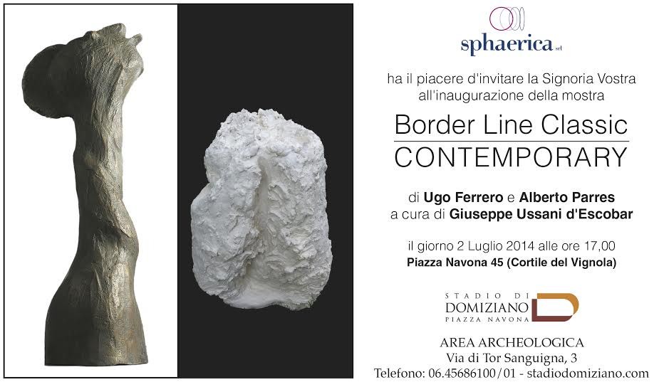 S’inaugura a Roma, il giorno 2 luglio alle ore 17 nella magnifica cornice del Cortile del Vignola connesso all'area Archeologica Stadio di Domiziano, con ingresso a Piazza Navona 45, finalmente riaperto al pubblico, la mostra degli artisti Ugo Ferrero ed Alberto Parres “Border Line Classic Contemporary” a cura di Giuseppe Ussani d’Escobar. La mostra coincide con gli eventi dell’Estate Romana. Campagna Amica offrirà dei prodotti di degustazione d’eccellenza per un elegante connubio fra “bellezza” e “bontà”. La mostra fonde i linguaggi di due artisti apparentemente molto diversi ma legati dalla stessa ispirazione verso la Classicità declinata con originalità e forza creativa. Ugo Ferrero presenterà due trittici, “Ciò che non sapremo mai di noi stessi” e “Saggezza, Forza e Bellezza” mentre Alberto Parres esporrà delle opere evocative, simili a “frammenti architettonici che sembrano versare lacrime di marmo”. “Le opere dei due artisti tracciano, nel cortile, un cerchio, figura geometrica tanto cara al Vignola: un invito all’Uomo a rimanere al centro degli equilibri di questo mutante Universo. ”.