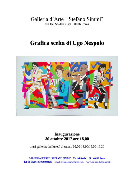 Si inaugura Lunedì 30 ottobre mostra personale con grafica scelta di Ugo Nespolo. La mostra a cura di Stefano Simmi, sarà presentata alle ore 18,00 presso la centralissima Galleria “Stefano Simmi” via dei Soldati n. 27, Roma.