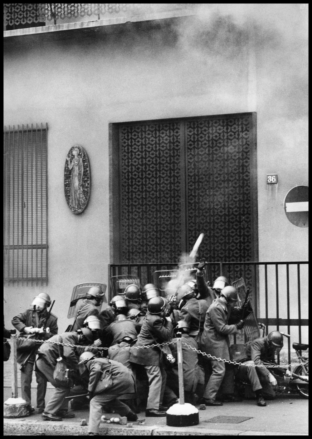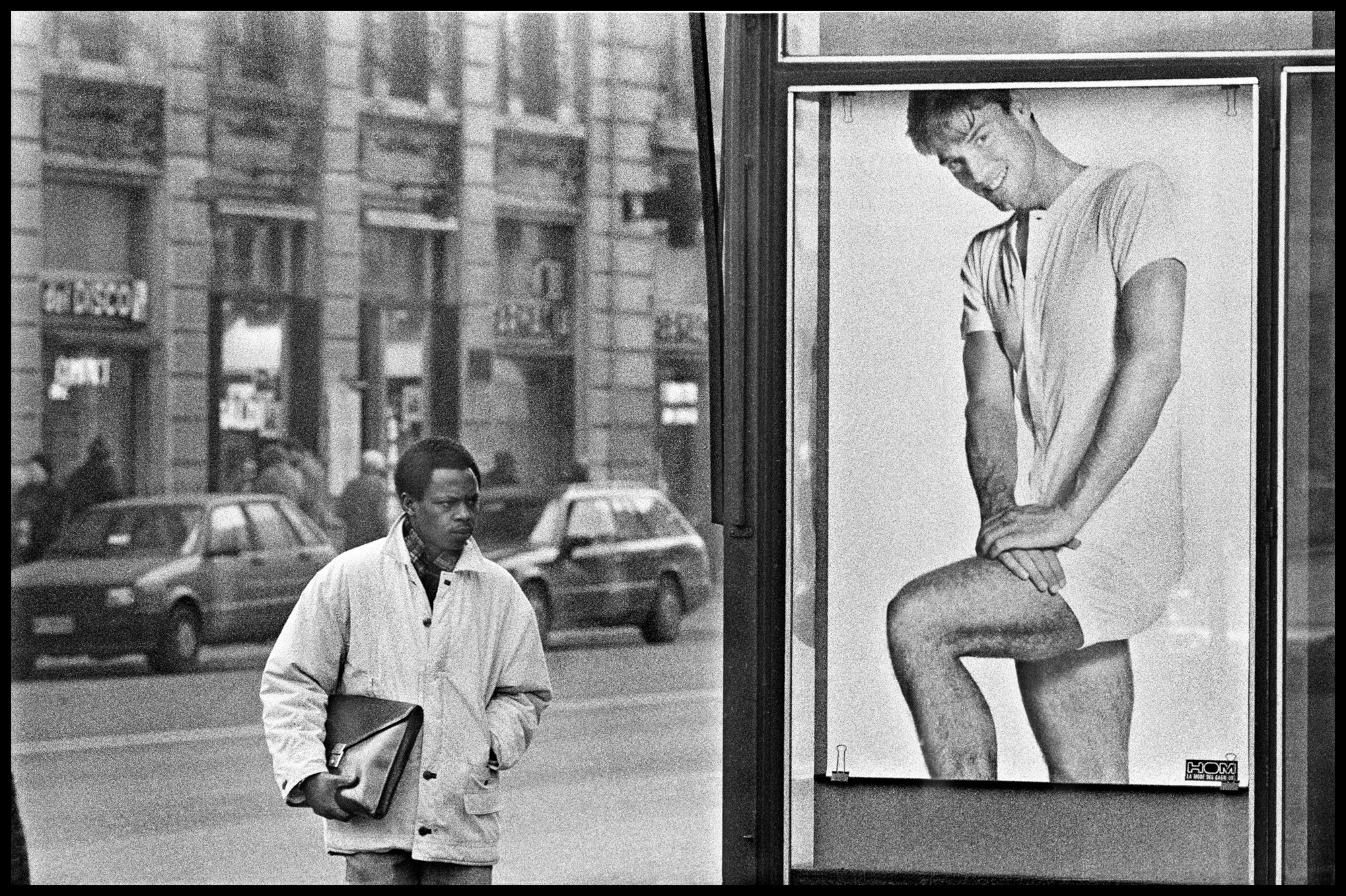 I primi anni lo vedono fotografare le atmosfere della sua città, la vita e i volti degli scrittori e pittori suoi amici – Enrico Castellani e Arturo Vermi, Piero Manzoni e Nanda Vigo – ma anche raccontare i nuovi fermenti nella musica e nello spettacolo, dal Cab 64 di Velia e Tinin Mantegazza ai gruppi rock degli Stormy Six e dei Ribelli. Poi arriva il coinvolgimento nelle riflessioni politiche scaturite dal movimento antiautoritario del ’68 e l’impegno in una lunga campagna di documentazione sulle realtà e le contraddizioni del proprio tempo: l’immigrazione in Italia e all’estero, la distruzione del territorio legata all’industrializzazione, le proteste di piazza degli anni ’68-’75, il movimento dei capitani in Portogallo e le guerre di liberazione in Angola, Eritrea, Guinea Bissau, seguite con i giornalisti Bruno Crimi ed Edgardo Pellegrini per riviste come “Tempo”, “Vie Nuove”, “Jeune Afrique” e “Koncret” o per iniziative editoriali diventate poi un punto di riferimento per la riflessione terzomondista di quegli anni.