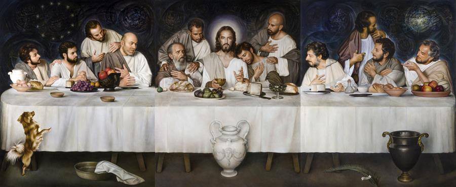La misurata efficace teatralità dell’impianto scenico dialoga allora idealmente con uno tra i più grandi capolavori del Rinascimento, distante solo poche decine di metri dal luogo dove è esposta l’opera di Sartini: l’affresco dell’Ultima Cena realizzato da Leonardo da Vinci per lo stesso complesso di Santa Maria delle Grazie. Costruendo un percorso lineare, attraverso i secoli, che dimostra le diverse declinazioni di un tema tra i più ricorrenti nella storia dell’arte.