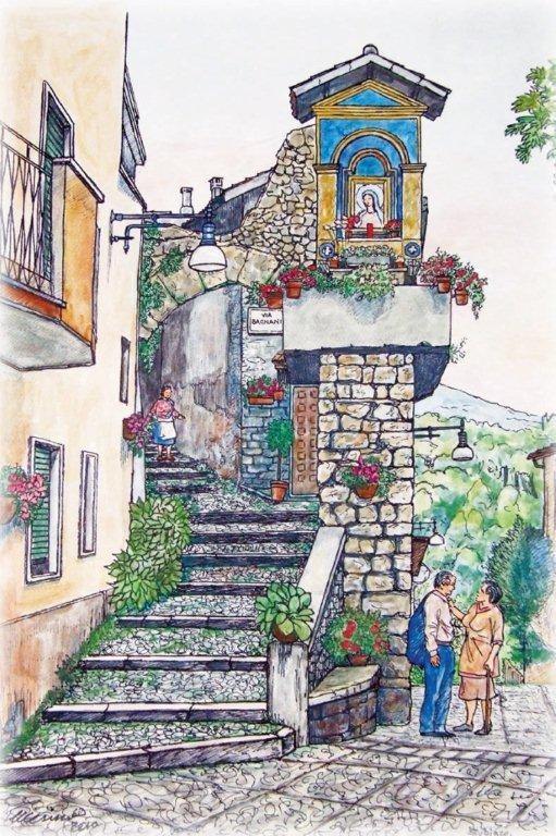 30 opere, tra grafiche acquarellate e dipinti su tela, interpretano Subiaco