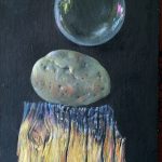 Dopo una serie di vivi ritratti vi sono alcune vaghe simbologie sul tempo, l’infinito e cose di questo genere, che hanno stimolato una più oggettiva e nitida esecuzione. Inoltre qualche sguardo agli stessi mezzi della pittura: dagli strumenti materiali, come il cavalletto, i pennelli, la tavolozza a quelli lessicali come il colore, il segno e le misteriose iridescenze, come quelle dei CD catturate con lo stesso stupore con cui gli antichi guardavano i riflessi del rame, dei cristalli e dei tessuti.