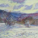 I paesaggi: colline, nevicate, mari ecc…salvo una primavera fiabesca e un vigneto infinito, sono tutti eseguiti ad olio, sul luogo, sia in grande che in piccolo formato. Quindi varie opere di fiori e frutti coi loro succosi cromatismi naturali.